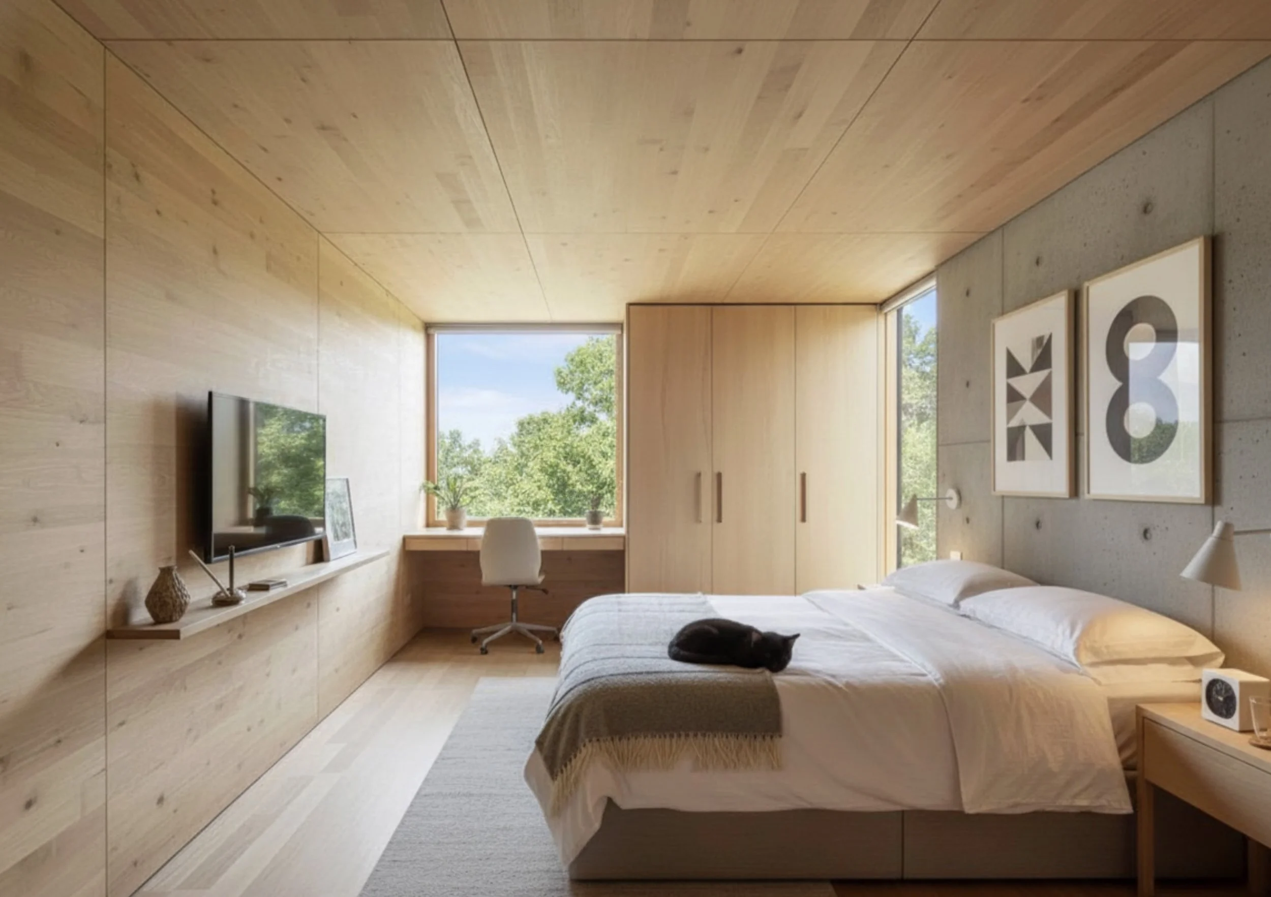 The home's core structure is built using mass timber, where exposed CLT panels lend natural warmth and texture to the interiors while also dramatically reducing carbon through sequestration. The foundation and vertical structural walls further minimizes environmental impact through the use of low-carbon concrete formulated with recycled concrete aggregate. The resulting dwelling is a thoughtful, durable sanctuary that honors both heritage design, low carbon construction and deep connection to the natural beauty of the region.