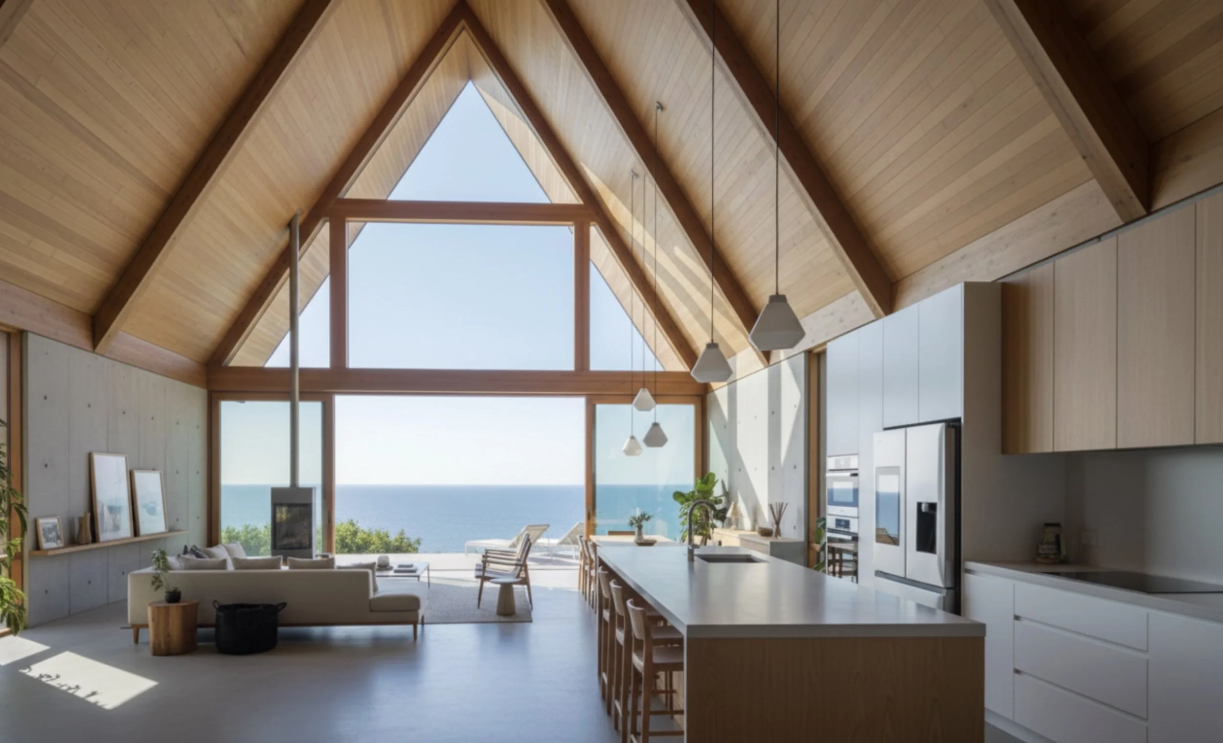 This home is conceived as a connection between two scales of nature: the vast horizon and the intimate ecosystem. By embracing the timeless, nostalgic charm of the A-frame, the home establishes an immediate visual anchor while delivering on modern sustainability and high-performance climate response.